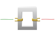 Dvi ritės, kurių vijų skaičių galima keisti. Įėjime ir išėjime rodoma įtampa (įėjime gali būti kelios fiksuotos įtampos).