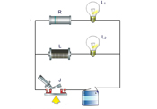 Elektrinė grandinė iš lygiagrečiai sujungtų dviejų lempučių, viena lemputė nuosekliai sujungta su varžu, kita su rite (su geležine šerdimi). Šerdį galima ištraukti, o vijų skaičių – keisti. Grandinę įjungiant/išjungiant rodomos srovių kryptys (sąveika);