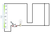 Kita grandinė, kur lygiagrečiai sujungta lemputė su rite. Išjungus grandinę, rodoma srovės kryptis, o pakeitus ritės parametrus – lemputė perdega (rodomi srovės stipriai).